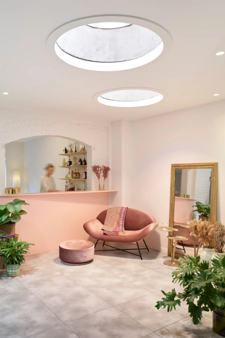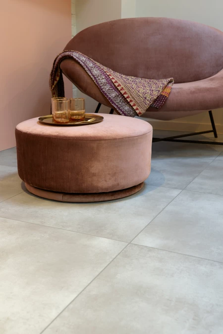 Poser du Parquetvinyl dans un magasin ? Bonne idée ! Avec leur classe d’usure 33, ces dalles conviennent à un usage intensif. Idéal donc. Les traces de pas boueuses après une averse de pluie sont ainsi facilement nettoyées. Dans ce magasin, ils ont choisi une dalle grise neutre qui s’harmonise parfaitement avec le mur rose tendance.