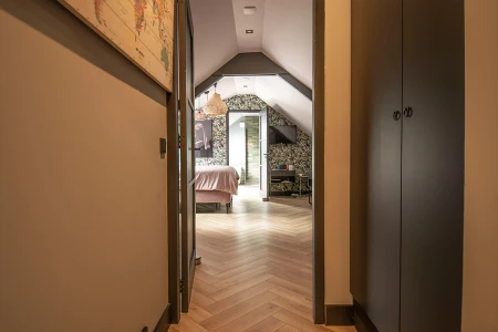 Yukon herringbone dans une chambre à coucher avec salle de bain attenante