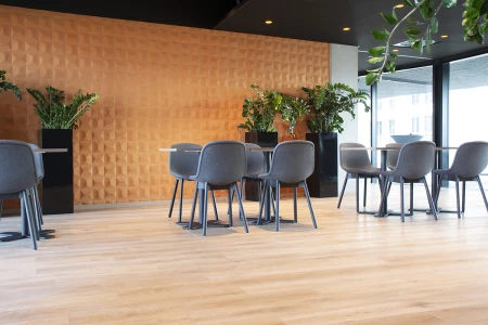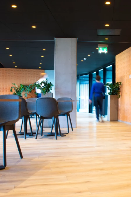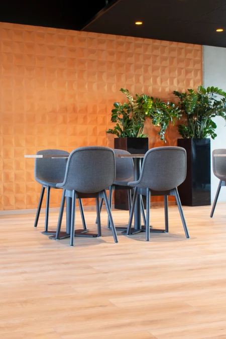 Les propriétaires du restaurant recherchaient un sol à l'aspect naturel, capable de résister à un usage intensif. Lorsque nous leur avons présenté le Yukon Mistral, ils ont eu le coup de foudre. Ils étaient déjà convaincus depuis un certain temps de la facilité d'entretien et de la résistance aux chocs du vinyle Parquet. Mais que l'aspect bois de ce sol PVC paraisse si réel, ils n'avaient même pas osé en rêver. C'est ce que nous appelons un mariage parfait !